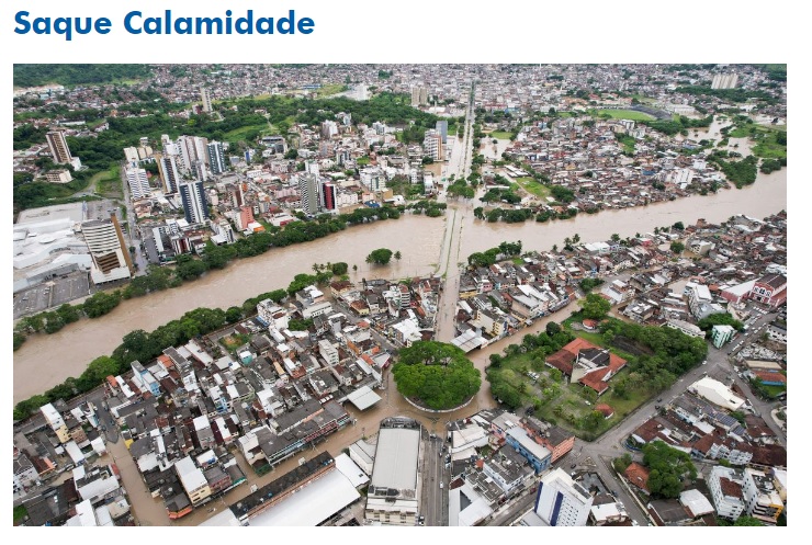 O Saque Calamidade permite ao trabalhador sacar até R$ 6.220,00 de cada conta de sua titularidade no FGTS, limitado ao saldo disponível, por motivo de necessidade pessoal, urgente e grave em caso de desastre natural (alagamentos, deslizamentos de terra, fortes chuvas etc.) que tenha atingido sua residência, após declaração oficial da Defesa Civil de seu município.